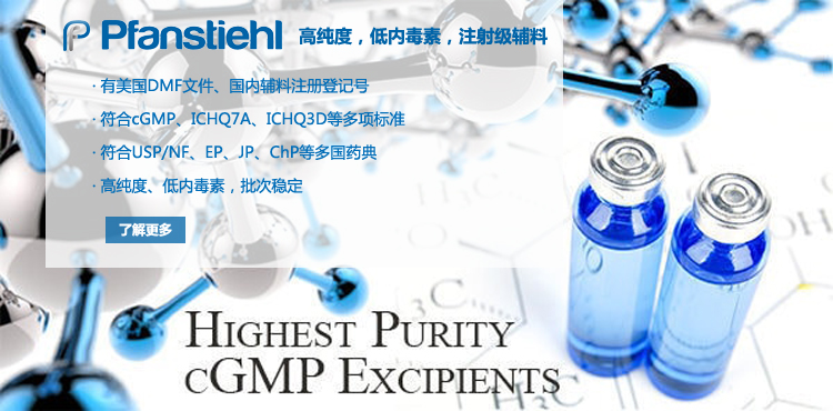 “熱烈祝賀Pfanstiehl的注射級甘氨酸Glycine(G-140)喜獲CDE登記號F20250000403, 這是Pfanstiehl產品獲得的第18個CDE登記號!”甘氨酸在醫藥輔料制劑中應用廣泛,, 可作為緩沖劑,增溶劑,穩定劑等,具有諸多優勢。Pfanstiehl秉承一貫高品質理念,為滿足全球生物制藥行業對于高品質甘氨酸的需求,隆重推出的注射級甘氨酸Glycine (G-140), 具有超高純度,超低內毒素,超低金屬殘留的特點,單獨檢測29種金屬離子,并且新增DNA,RNA,DNA酶,RNA酶和脂肪酶,亞硝酸鹽等多項質量指標的檢測,符合多國藥典規定(USP, EP, BP, JPE, ChP),可用于生物治療性藥物和疫苗的生產。產品信息:· 產品名稱:Glycine, High Purity, Low Endotoxin, Low Metals, USP, EP, BP, JPE, ChP (G-140)· 中文名稱:甘氨酸· 分子式:C2H5NO2· 分子量:75.07 g / mol· CAS號:56-40-6· 產品貨號:G-140產品特點: · 超高純度,超低內毒素,超低微生物含量,超低金屬雜質殘留· 質量指標新增DNA,RNA,DNA酶,RNA酶,脂肪酶和亞硝酸鹽檢測· 符合多國藥典:USP, EP, BP, JPE, ChP· 符合ICH Q3D標準· 符合GMP標準· 已獲DMF和CDE登記號 產品應用:· 緩沖劑· 穩定劑· 增溶劑如果您對Pfanstiehl注射級別Glycine G-140感興趣,歡迎聯系Pfanstiehl 中國區代理商北京西美杰科技有限公司獲得如下詳細的產品概況說明文件和測試樣品。Pfanstiehl Inc.最新產品系列如下,歡迎聯系北京西美杰科技有限公司獲取100g裝免費樣品。北京西美杰科技有限公司為Pfanstiehl中國代理,為客戶提供完善的技術支持與售后服務。歡迎撥打西美杰客服電話400-050-4006或者登陸網站www_xmjsci_com.wy7s.com了解更多信息。 更多>